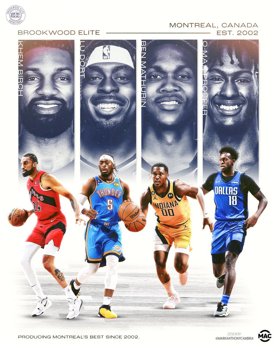 Brookwood Elite alumni include Luguentz Dort, Bennedict Mathurin, Olivier-Maxence Prosper, and Khem Birch — reflecting the program's proven pathway to the professional level.